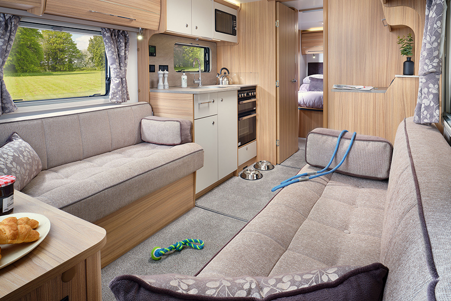Pegasus interior décor has been expertly refined with the introduction of new ‘Cashmere’ decorative finishes and ‘Warm Grey Marble’ worktop surfaces to complement the existing Bailey ’Light Oak’ furniture, featuring re-designed curved overhead locker doors with dual chrome profiles, to create sophisticated new look beautifully showcased by the signature Bailey vertical front picture window.