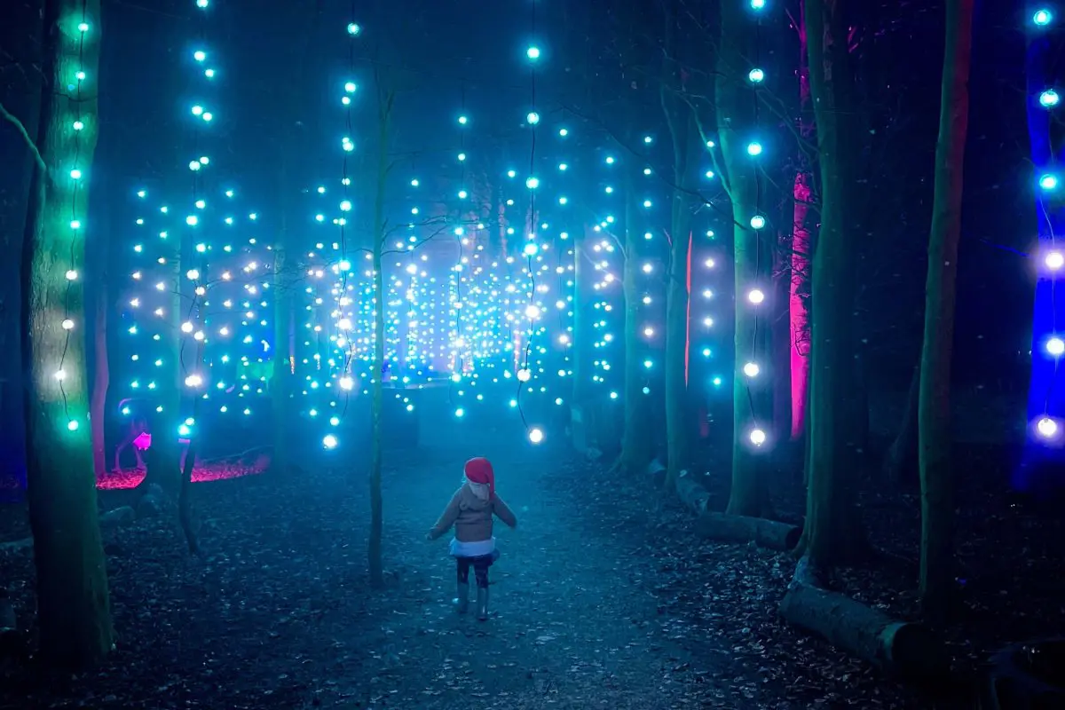 Our first stop was The Cotswold Farm Park. The campsite was beautifully maintained with easy access to the Farm Park. Their Enchanted Light trail was incredible and the real highlight of the trip. The trees on the farm were lit up in various colours, mesmerising Willow and Finn. Throw in toasted marshmallows, hot chocolate, Christmas karaoke, and some live music, and we had a great night.