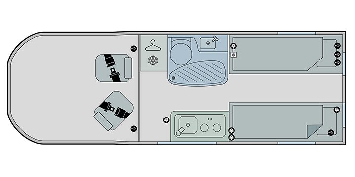 • Front lounge with twin dedicated rear travel seats, including 3-point seatbelts and one ISOFIX fitting (model specific)