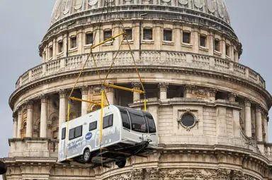 Caravans can fly! A new Bailey Unicorn flies over London to celebrate staycations and caravanning