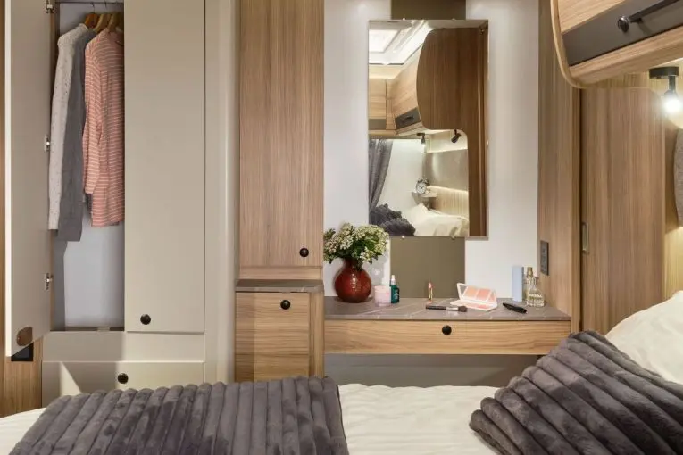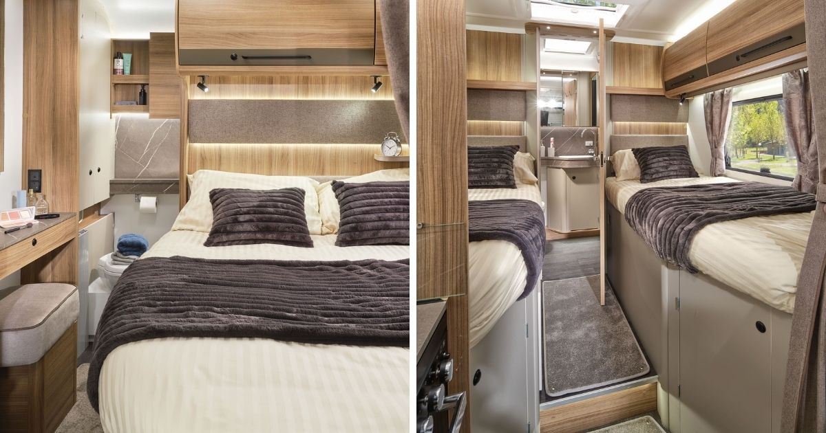 The Autograph 79-4F features a single-level French bed layout, along with improved storage and a spacious lounge area, ideal for couples looking for space to move freely with an en-suite bedroom feel. The French bed, measuring 6’3″ x 4’3″, is the largest in its class.