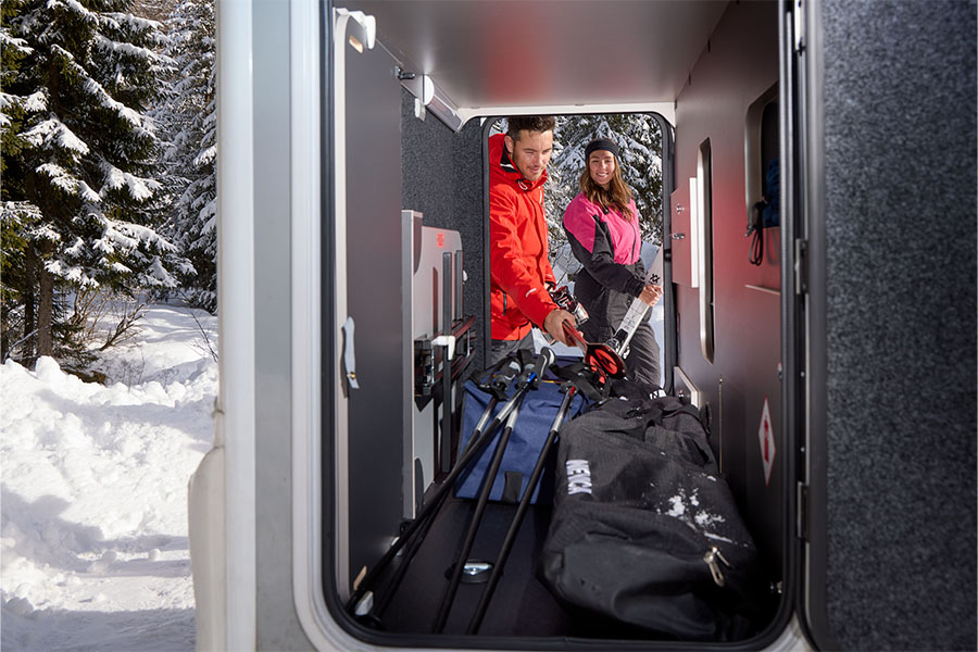 - Huge rear garages in models like the Adamo 75-4DL and XL-DL, which swallow all the stuff families tend to bring like bikes, helmets, paddleboards, scooters, pushchairs, walking boots.