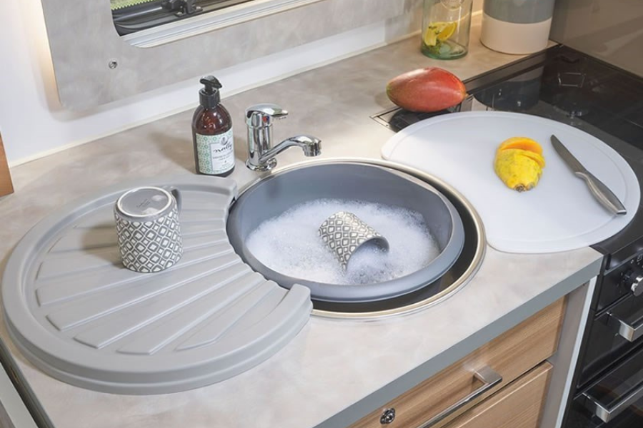 - Well-equipped kitchen with a Dometic 92 litre undercounter fridge