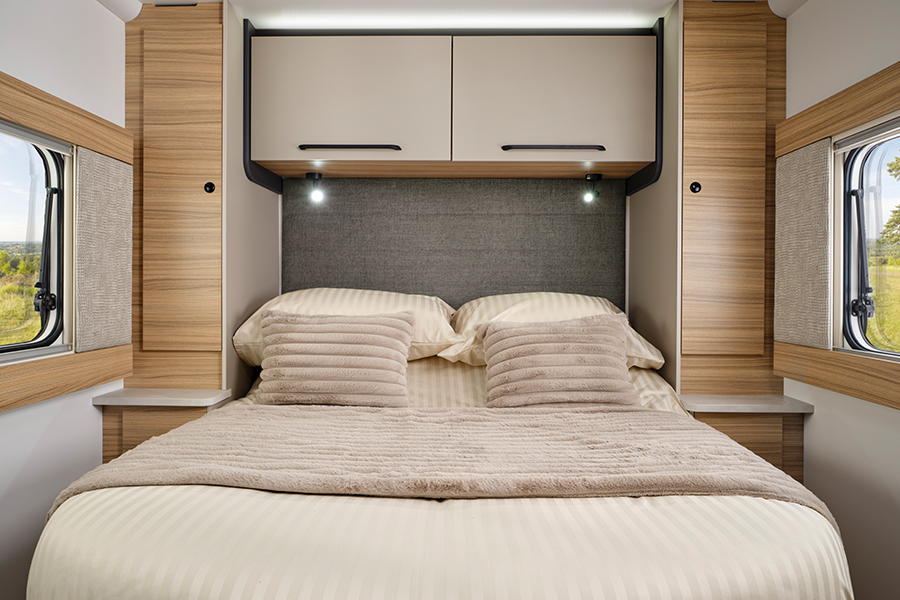 - Front lounge converts to twin singles or a double bed, available in two fabric options