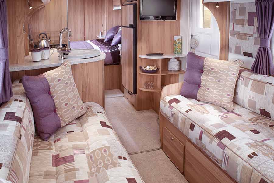 - Fully sprung upholstery (except split cushions used in bunk make-up) featuring premium quality fabrics, high density filling and superior cushion construction and a De-Luxe sprung mattress (model specific)